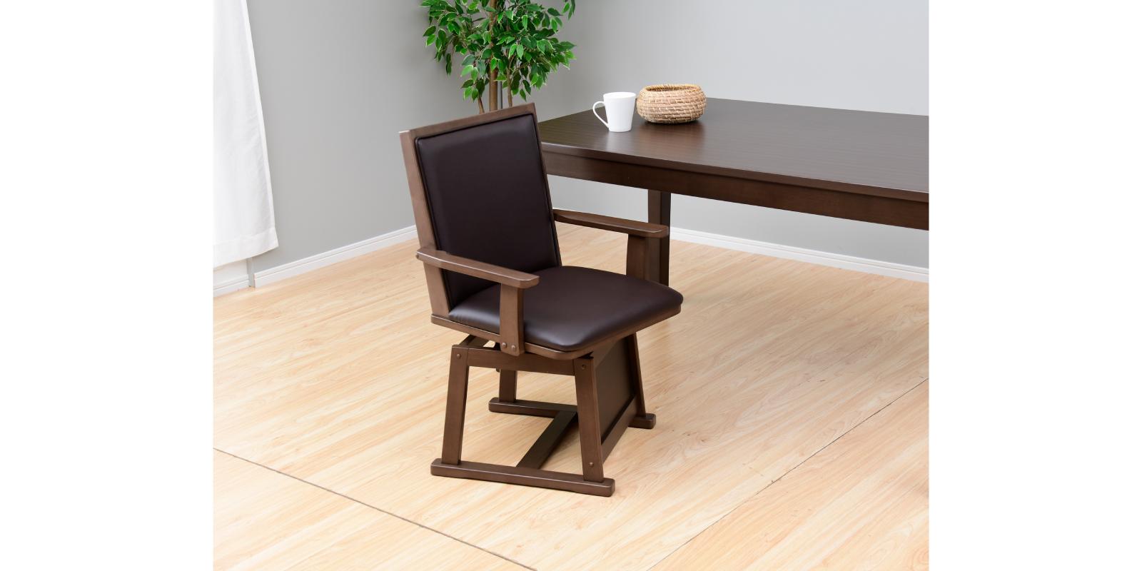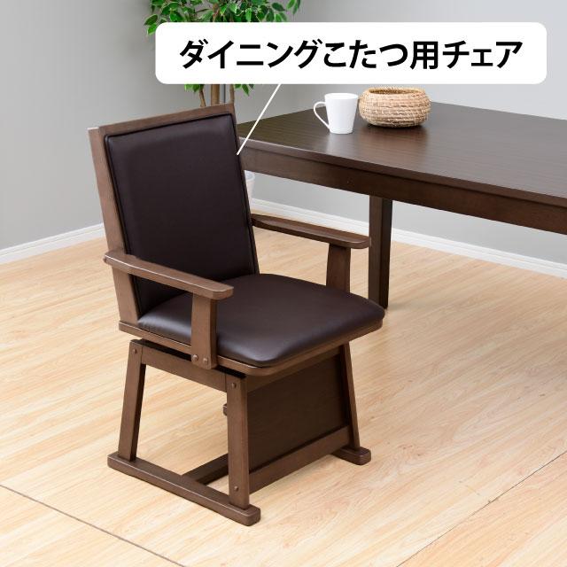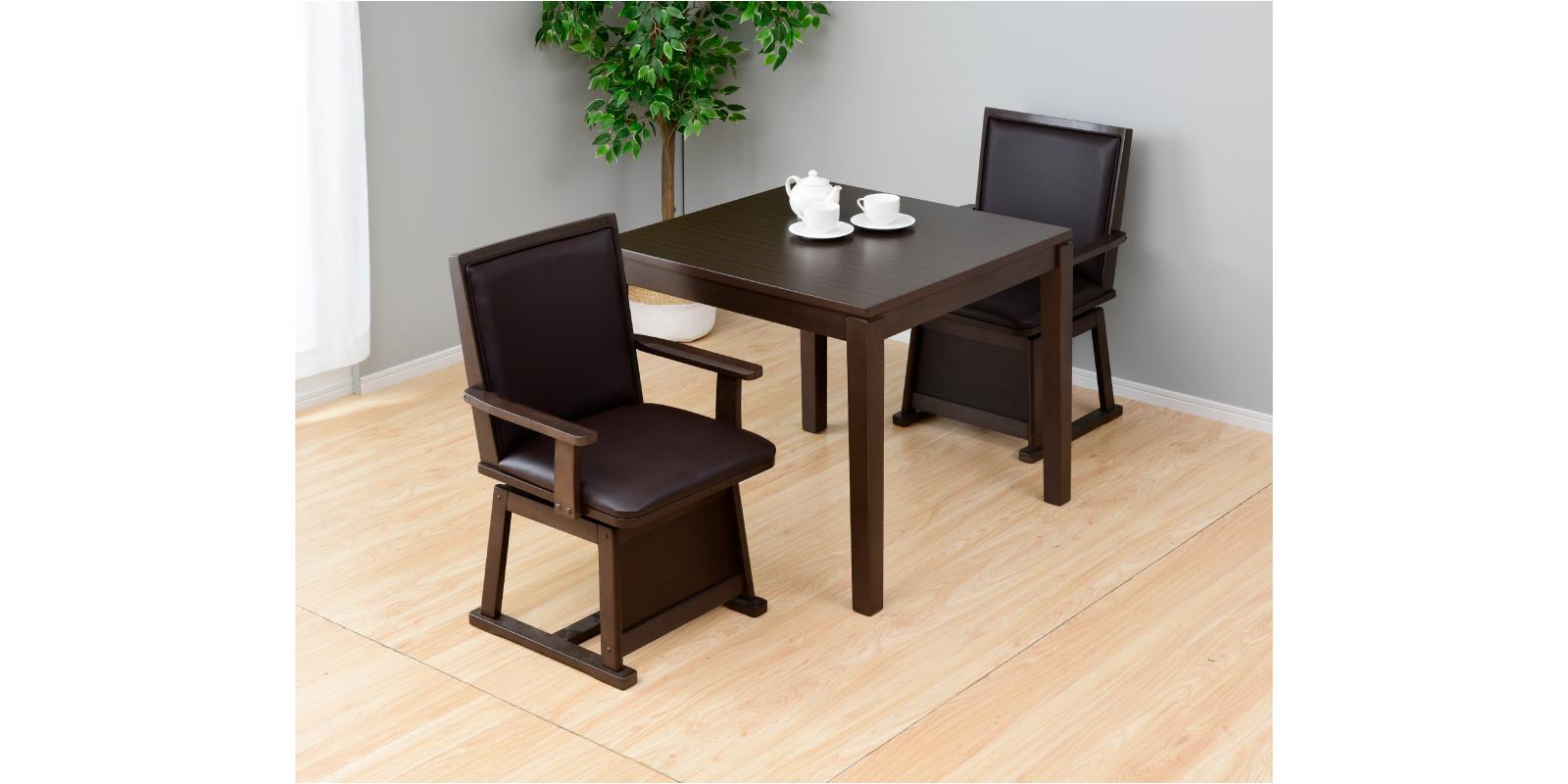 こたつとしてはもちろん、布団を外せばダイニングテーブルとして一年中活躍します。高性能ヒーターでしっかり暖まり、組み立ても簡単なので届いてすぐに使えます。木目調の天板が高級感を演出し、お部屋の雰囲気に自然に馴染みます。安定感のあるしっかりした造りで、安心してお使いいただけます。また、椅子は360度回転式のため、立ち座りがしやすく、こたつ使用時でもスムーズに動けます。